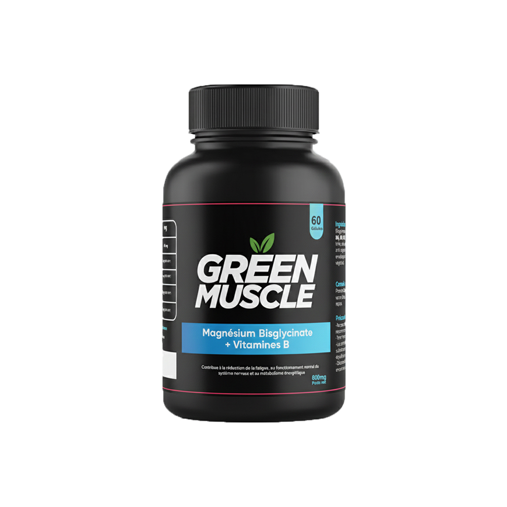 Le Magnésium Bisglycinate GreenMuscle est reconnu pour sa haute biodisponibilité et son excellente tolérance digestive. Il contribue à une fonction musculaire normale, aide à réduire la fatigue et soutient l’équilibre nerveux, particulièrement en période de stress ou d’effort physique intense.
