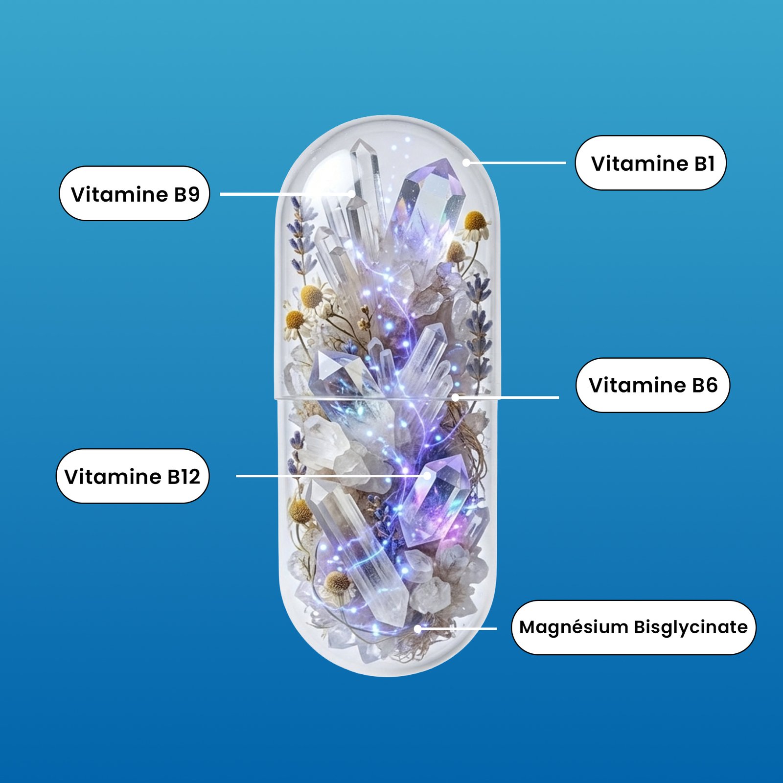 Un complément à base de magnésium bisglycinate hautement absorbable et de vitamines B pour réduire la fatigue, soutenir le système nerveux et améliorer la récupération.